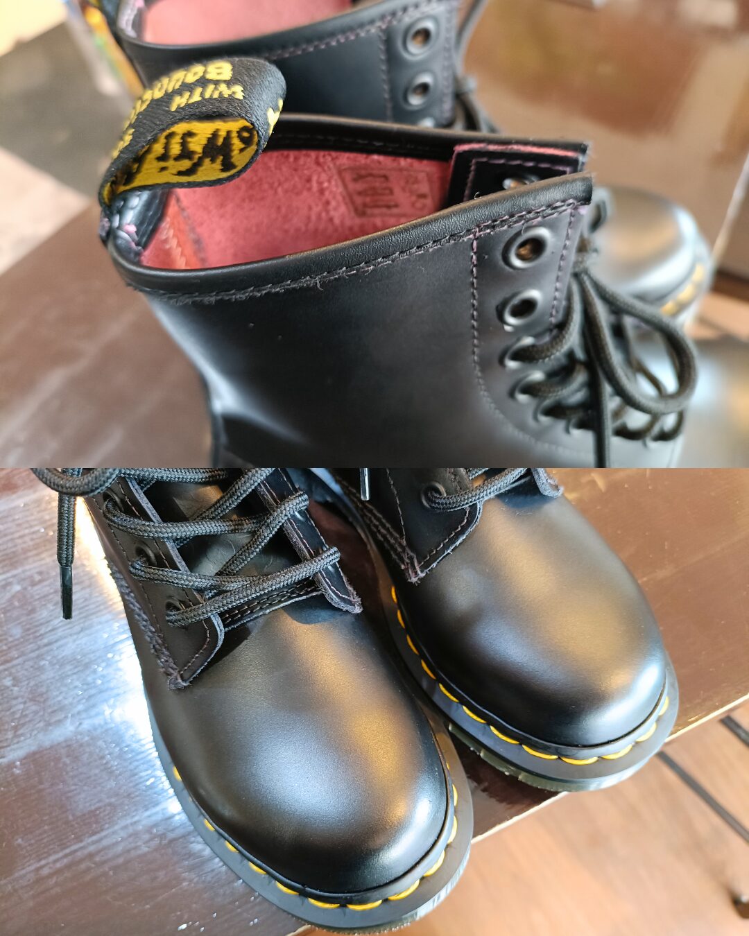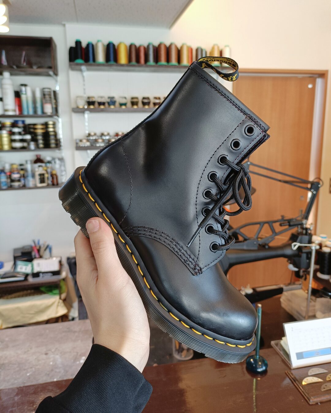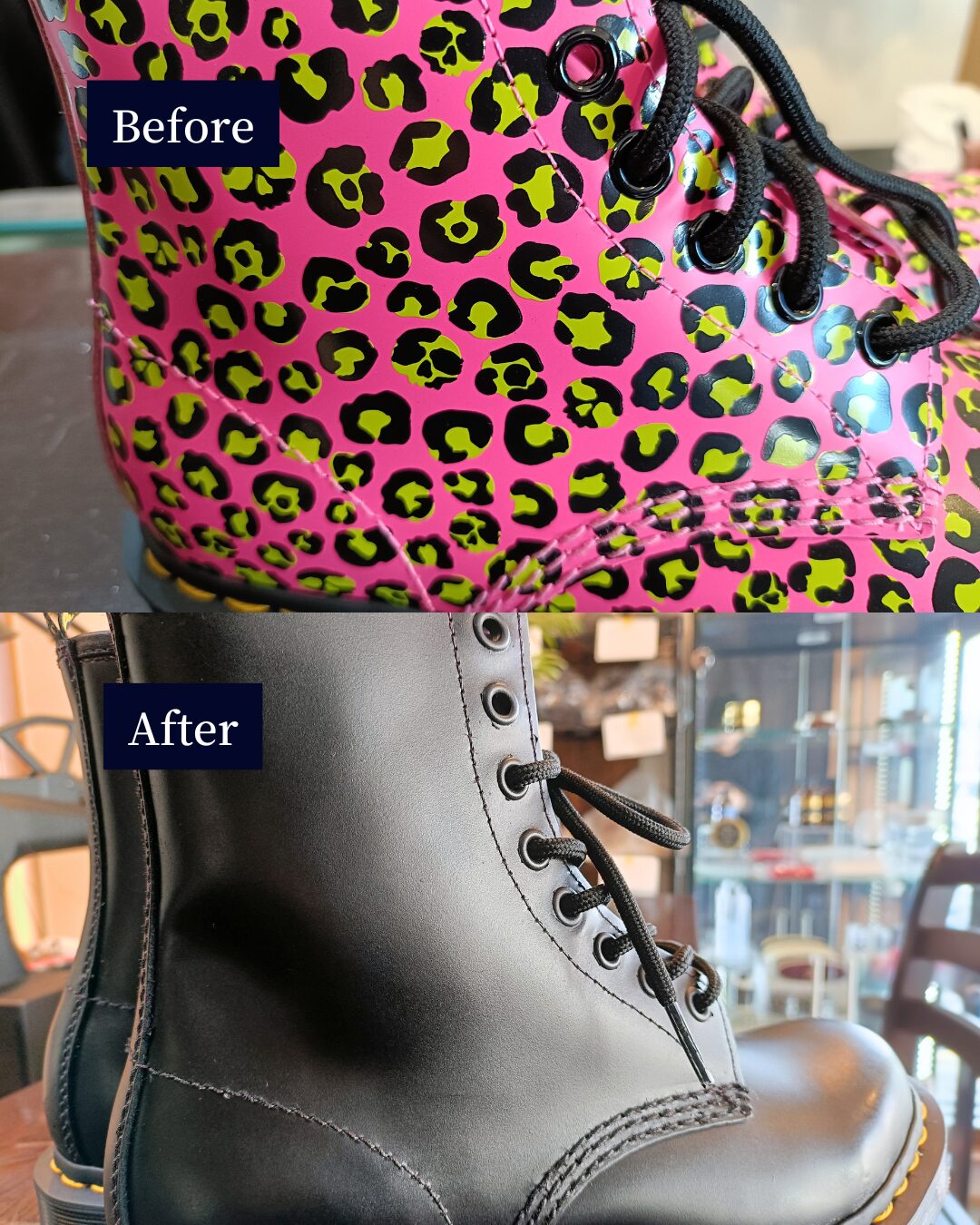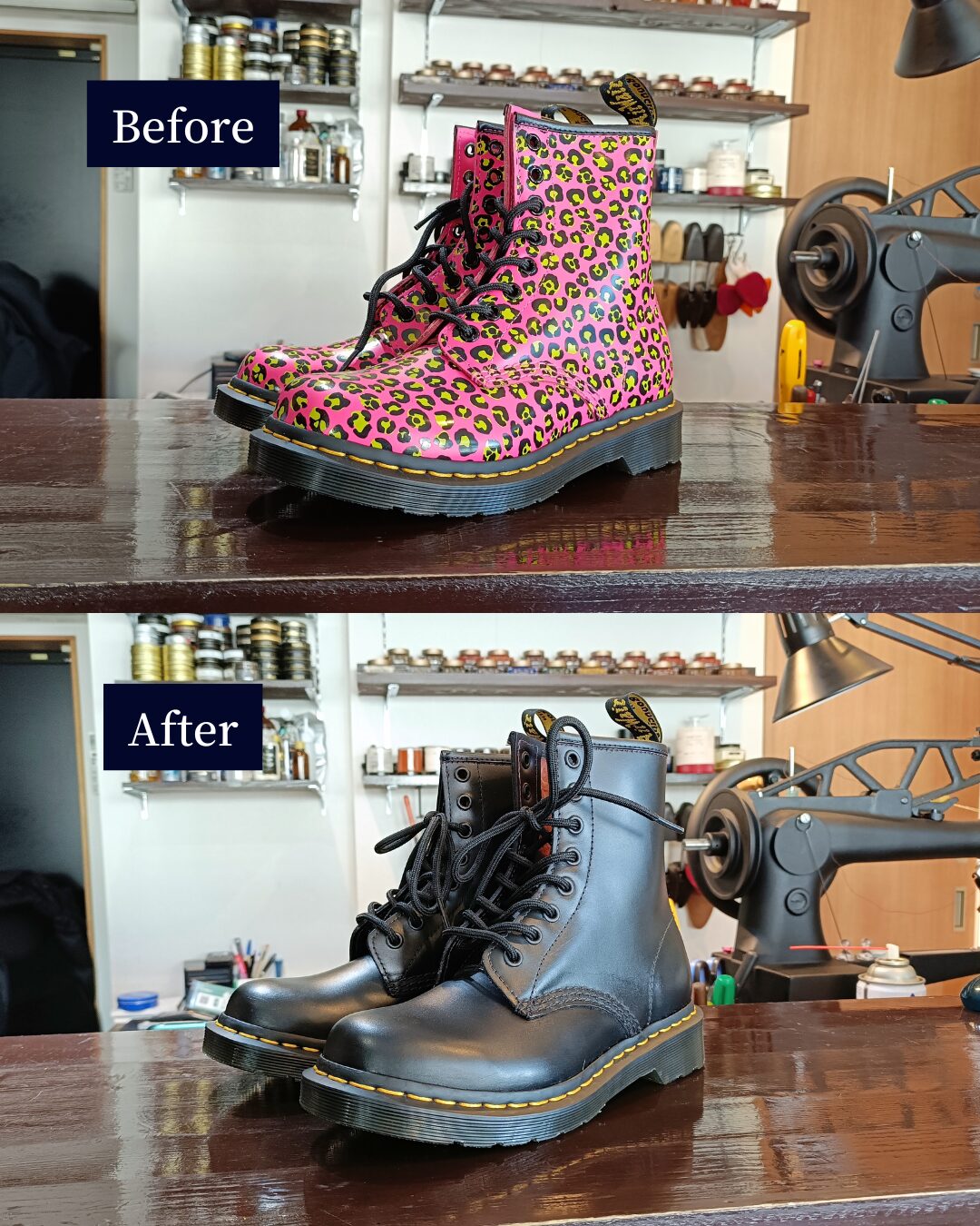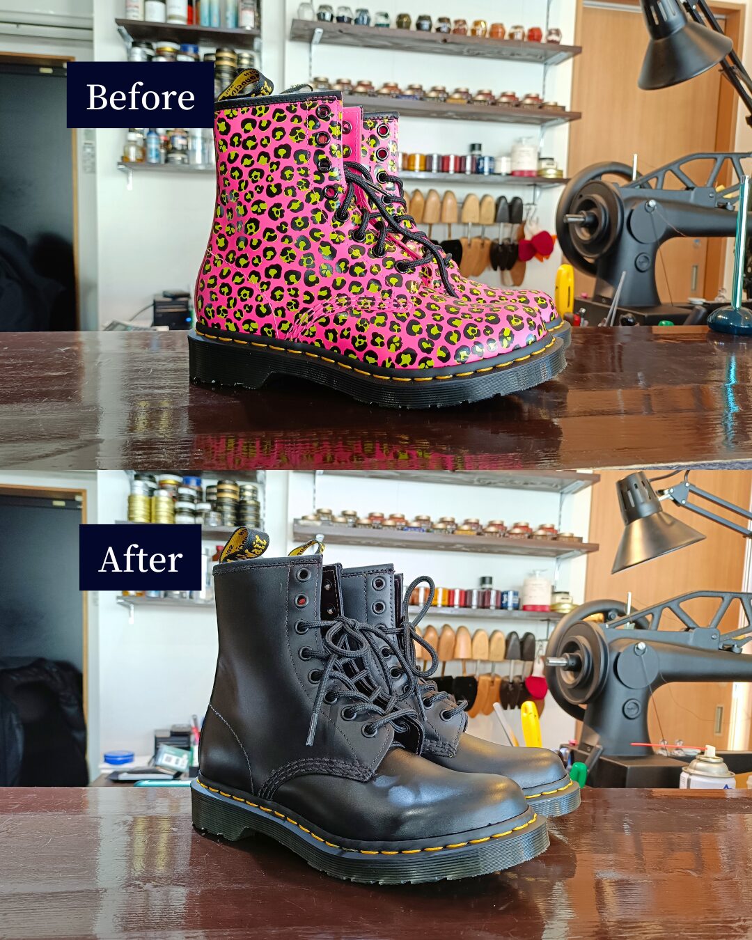 ピンクのレオパード柄が印象的なドクターマーチンの染め替えをご依頼いただきました。
