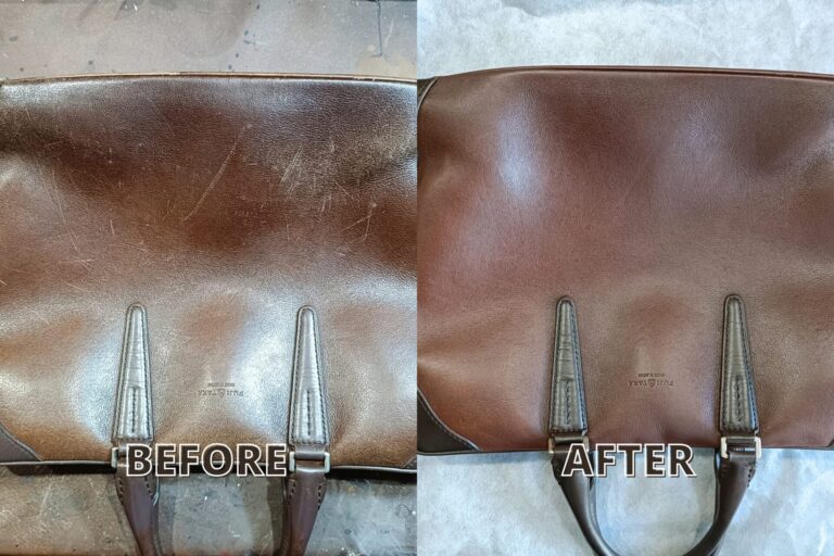 単に色を足して隠すのではなく、革の粒立ちや自然な濃淡を活かしながら補色を行います。