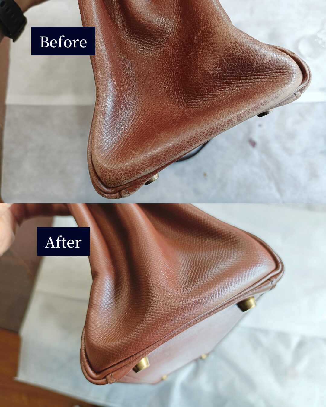 エルメスのような上質なレザーは、“ただ塗る” のではなく “素材に合わせて色を作り、薄く重ねていく”という繊細な技術が欠かせません。