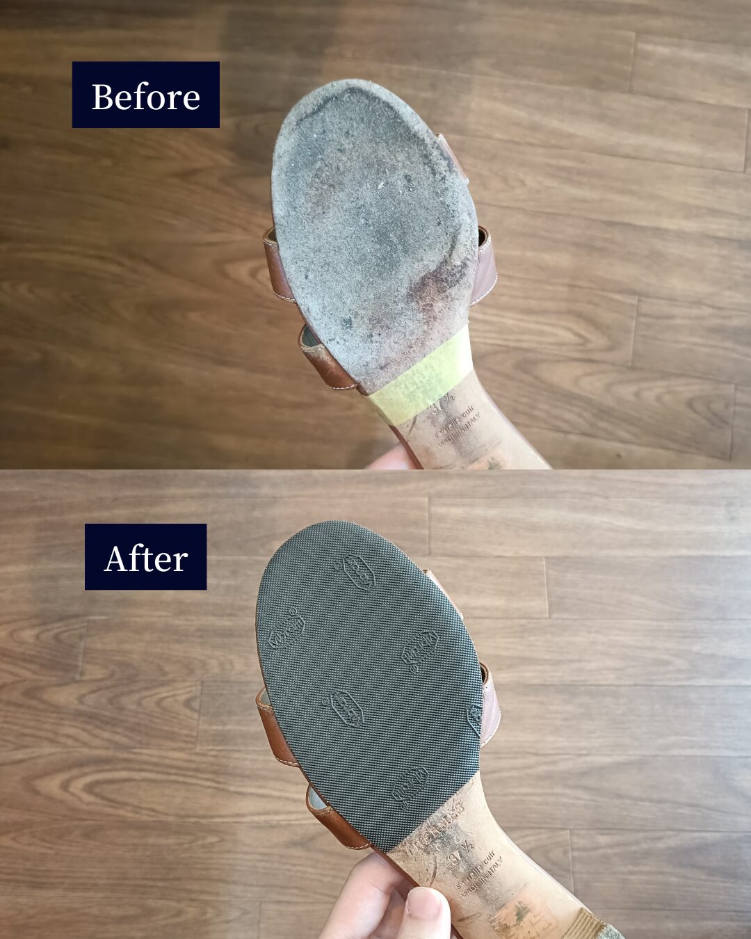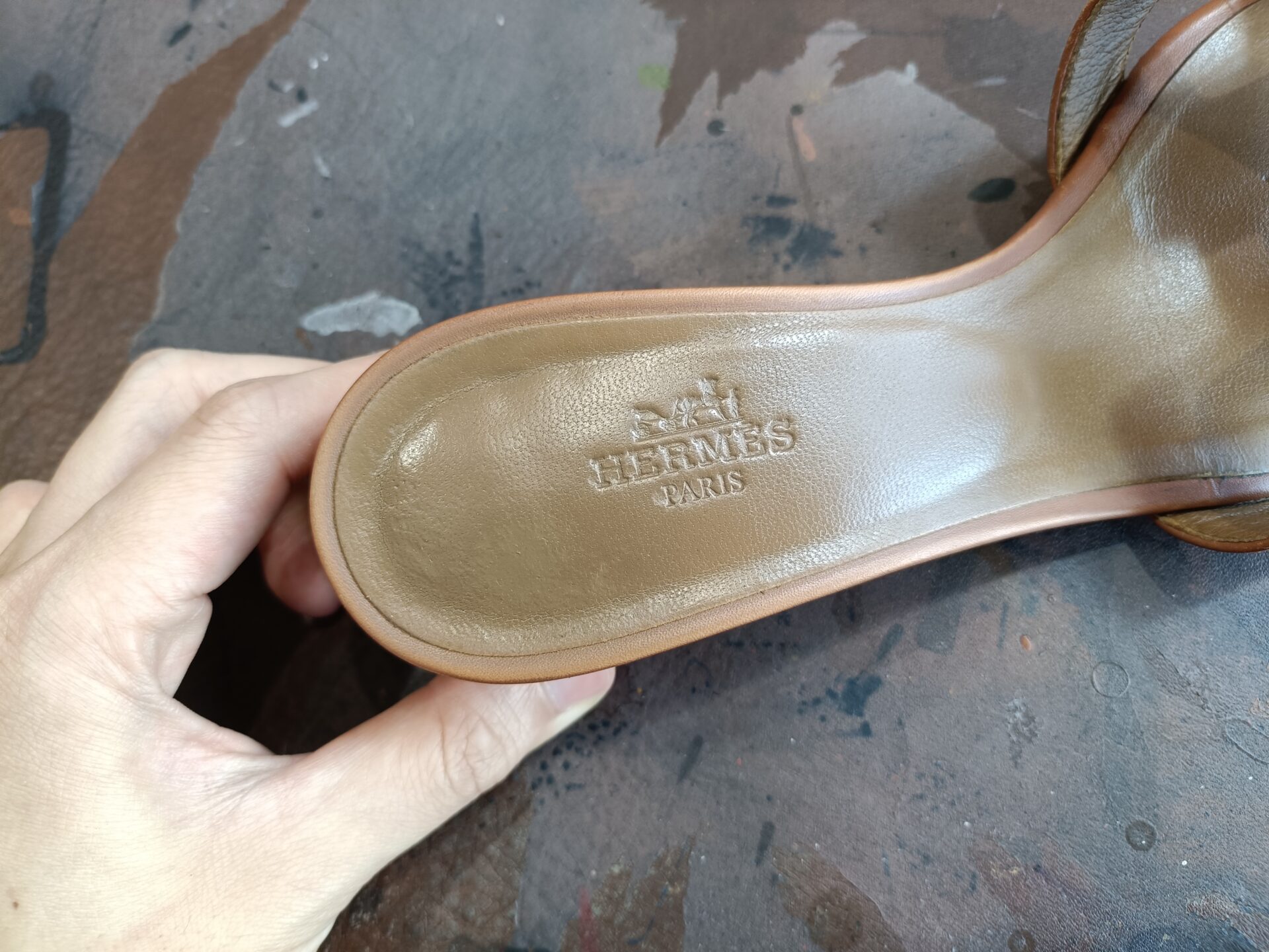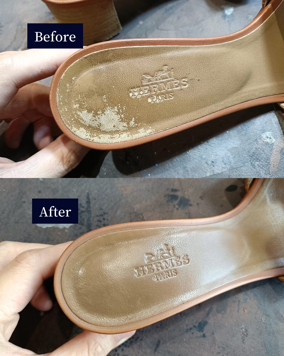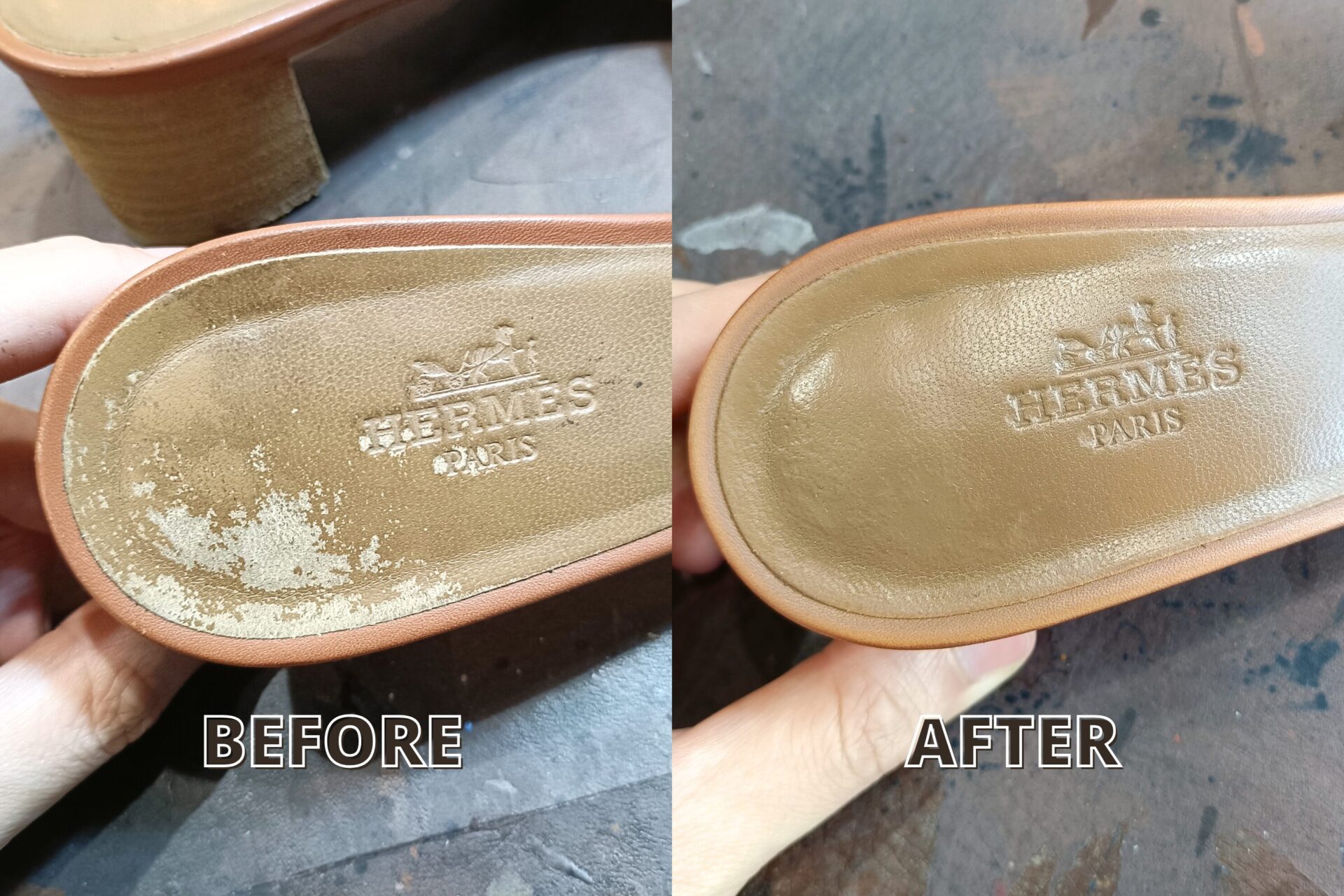 インソール交換をしてしまうと、HERMÈS のロゴ刻印が消えてしまう