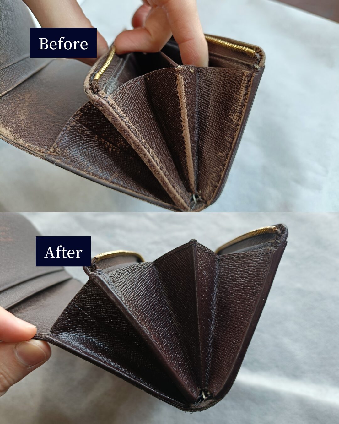 派手な修理ではありませんが、開くたびに目に入るのが財布の内側。