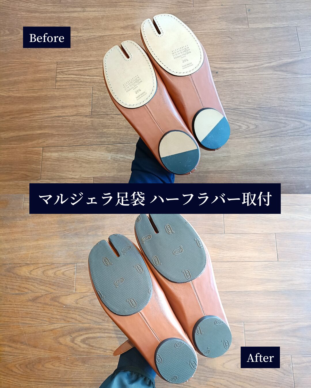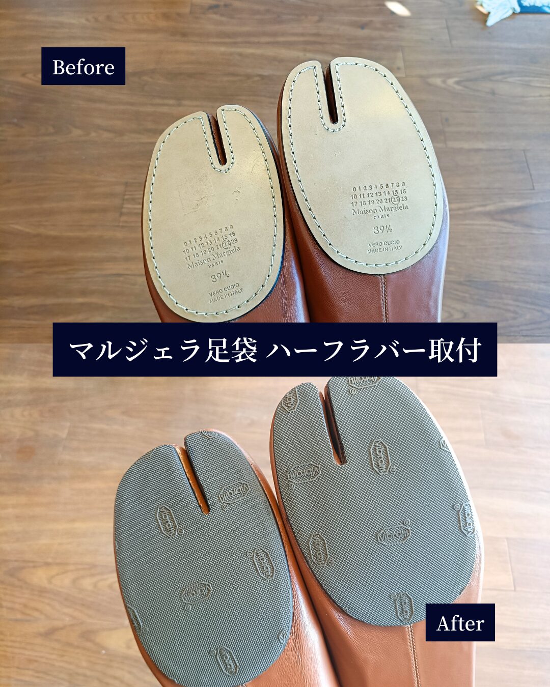 Maison Margielaの足袋シューズは、イタリア製の革ソール(VERO CUOIO)が使われています。