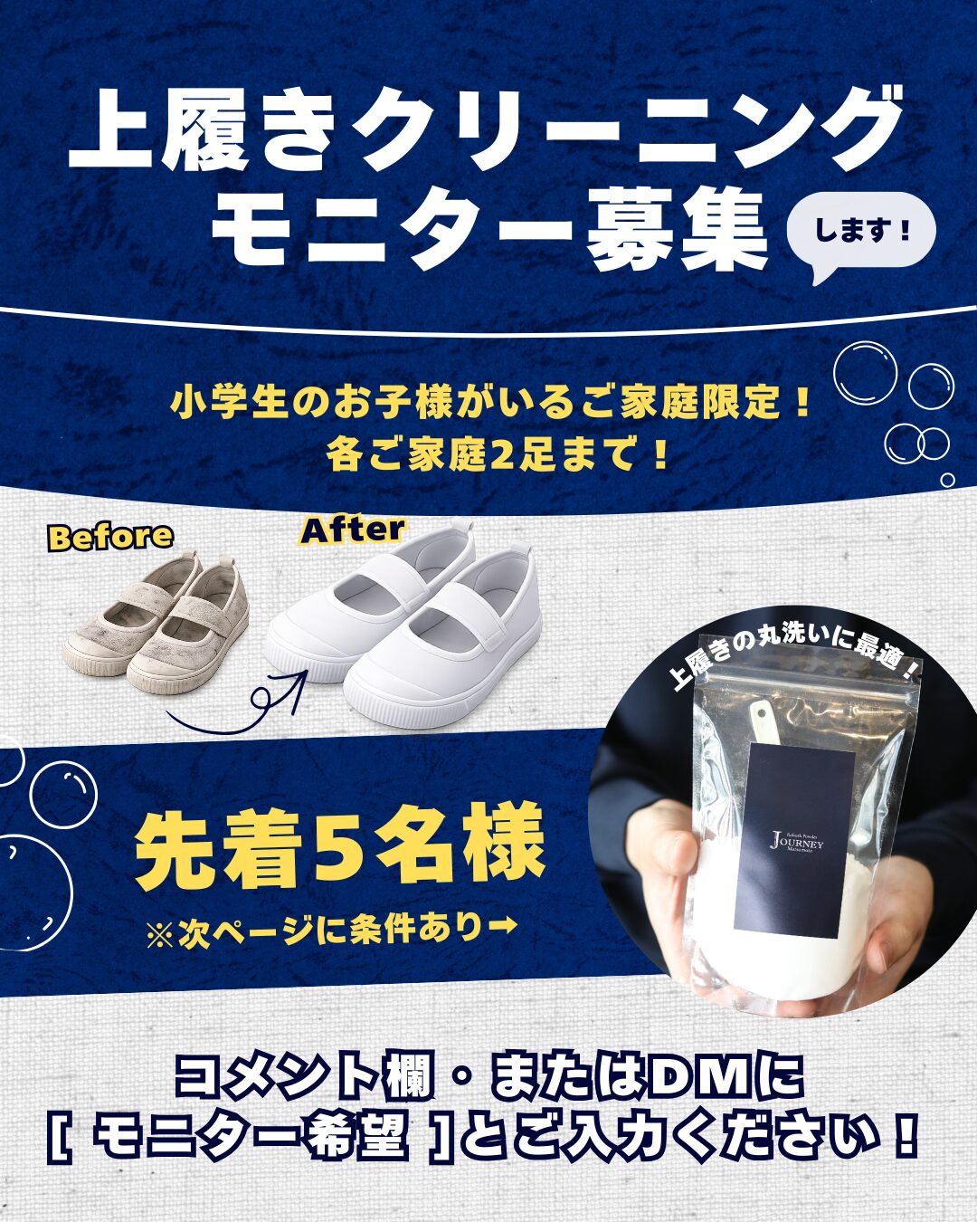 上履きクリーニング|モニター募集のお知らせ