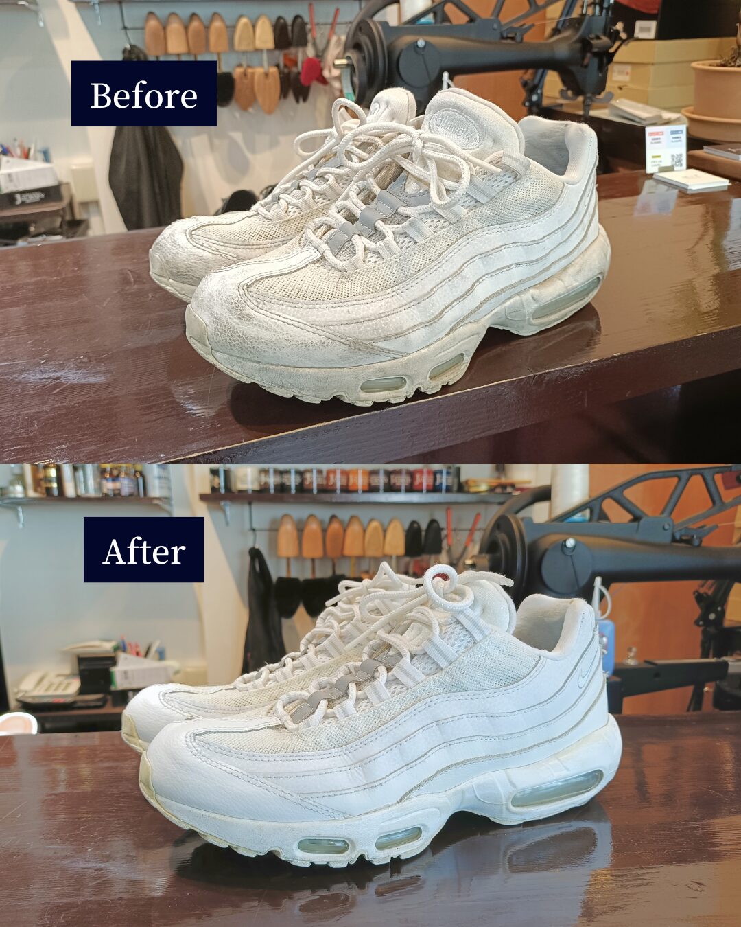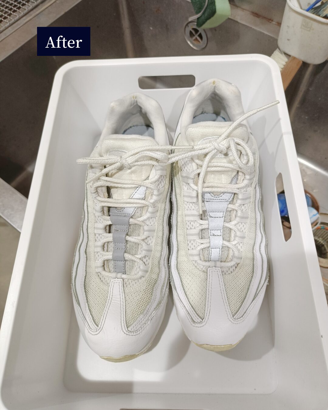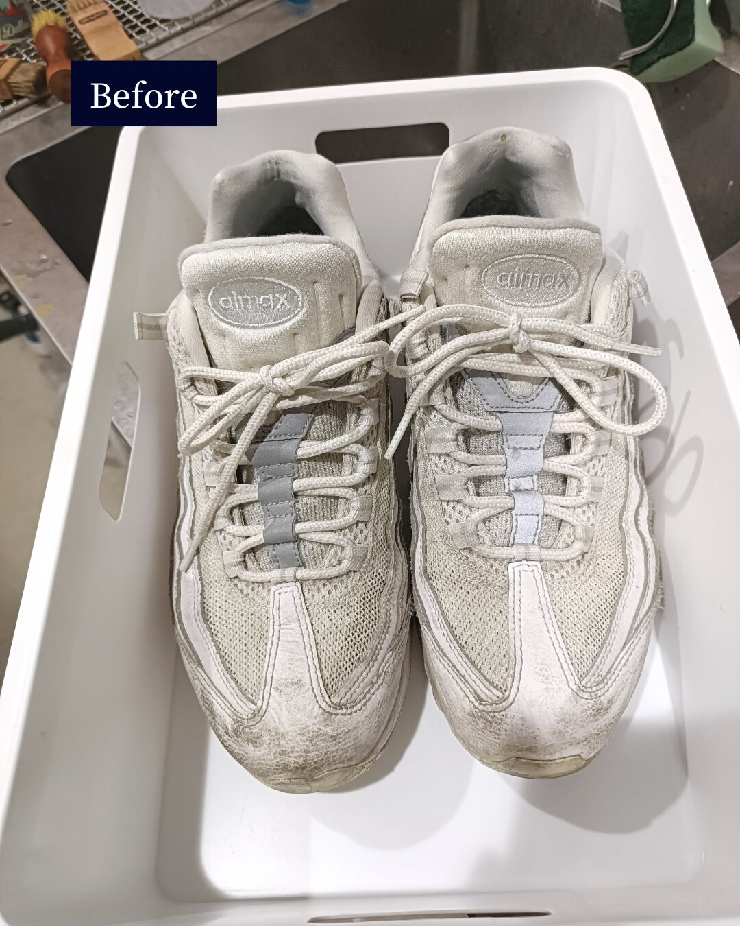 ※ブログやSNSで掲載しているビフォーアフターは、当店での高圧洗浄などのクリーニング工程を含んだ仕上がりです。ご家庭でのつけ置き・手洗いだけでも汚れは浮きますが、仕上がりは必ずしも同じにはなりませんのでご了承ください。