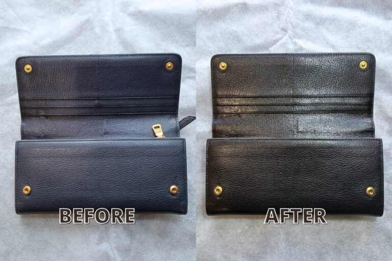 miumiu|財布の染め替え(ネイビー→ブラック)、染みを活かした色変えという選…
