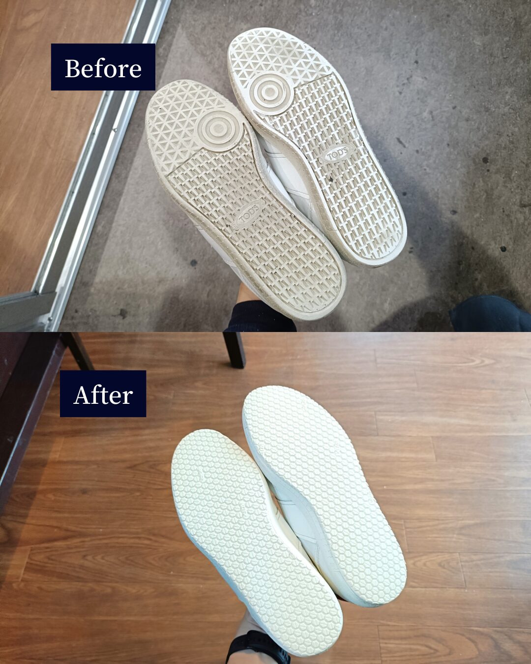 トッズのスニーカーに、全面ラバーの裏張りを行いました。